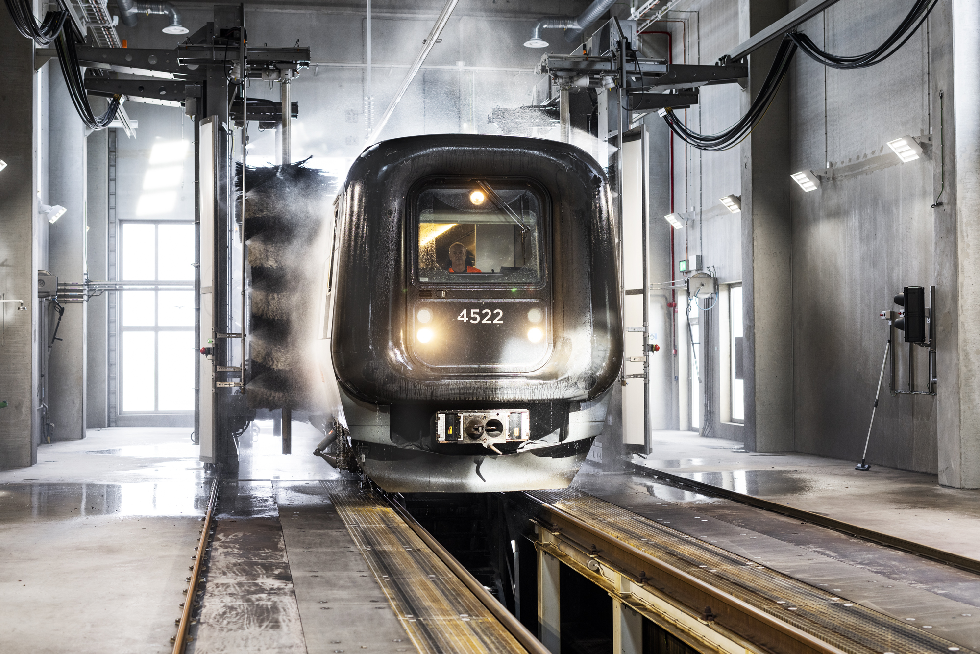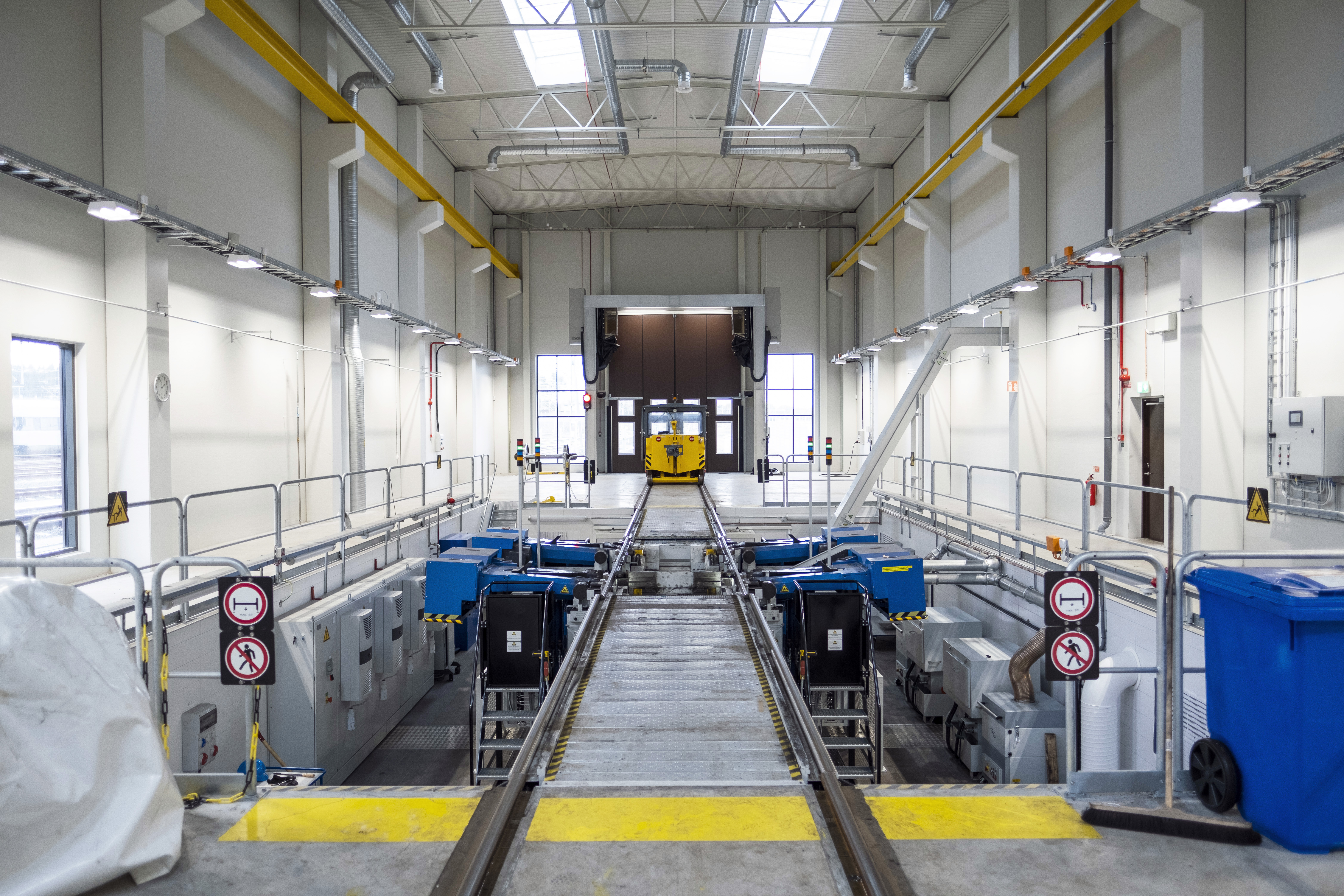 I verkstadshallen lagas tågen. Den har 10 spår varav ett med lyftbockar och ett med hjulsänk för att smidigt och effektivt komma åt att arbeta med fordonet. Ett spår har kombibox för bland annat lackering/måleri och kompositplastarbeten.
